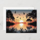 A stunning sunset scene over a peaceful lake, with flying birds and silhouetted trees creating a calm and reflective mood. Perfect for home décor and nature lovers alike