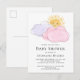 La carte postale baby shower de cette mignonne fille est décorée de nuages d'aquarelle rose et mauve et d'un soleil jaune souriant. Facile à personnaliser. En créant notre oeuvre, vous ne trouverez pas cette image exacte d'autres créateurs. Aquarelle originale © Michele Davies.
