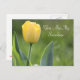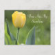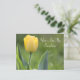 Un bain de tulipe jaune joyeusement au soleil au milieu d'un arrière - plan d'une pelouse verte printanière. Photographie et design par Victoria Lynn Hall.
