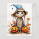 Cette carte postale d'Halloween unique présente un adorable petit tour ou un traitement de l'épouvantail. N'hésitez pas à régler toutes les options disponibles comme vous le souhaitez.