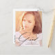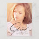 Cette carte de vœux élégante de remise de diplômes présente une calligraphie délicate et une grande photo. Sur le devant, le mot « Grad » est écrit dans une belle écriture noire en bas de la carte. Ajoutez le nom du diplômé, l'année de remise des diplômes et l'école en bas. Le design de typographie jolie se superpose à une grande photo verticale. Au dos de la carte de remise de diplôme, vous pouvez ajouter un message aux destinataires et / ou des informations sur la fête de remise de diplômes.