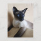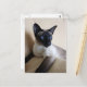 Beaux yeux bleus sur ce Seal Point Siamese Chat qui s'allonge, mais attention sur un taupe ou une couverture de lancer couleur chameau utilisé comme arrière - plan.