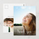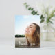 Une carte de remerciement de remise de diplôme moderne avec la photo du diplômé superposée avec "merci" dans une écriture blanche avec des fioritures et leur nom et année de promotion en typographie blanche simple. Au verso, ajoutez une photo supplémentaire, personnalisez un message de remerciement et ajoutez leur nom dans une écriture ressemblant à une signature.