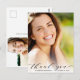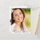 Une carte de remerciement de remise de diplômes moderne comportant la photo du diplômé superposée avec "merci" dans un script élégant et leur nom et année de promotion dans une typographie simple. Au verso, ajoutez une photo supplémentaire, personnalisez un message de remerciement et ajoutez le nom du diplômé dans un script ressemblant à une signature.