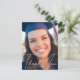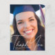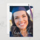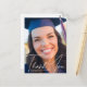 Cette carte postale de remerciement de remise de diplômes tendance présente une écriture blanche manuscrite sophistiquée sur une photo pleine page chic de votre diplômé. Cartes postales avec superposition de typographie moderne.