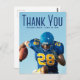 Un « Merci » écrit en typographie bleue haute au-dessus de votre photo de portrait de diplômé senior crée une simple carte postale de remerciement de fin d'études pour un joueur de football dans une équipe sportive. Personnalisez avec votre nom et votre promotion 2023 sur ces cartes postales de fin d'études minimalistes avec superposition de texte. Écrivez un message personnalisé de remerciement au verso.