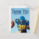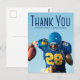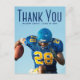Merci écrit en typographie bleue haute sur votre photo de remise de diplôme de portrait senior fait une simple carte de remerciement de fin d'études pour un joueur de football dans une équipe sportive. Personnalisez avec votre nom et votre promotion 2026 sur ces cartes de fin d'études minimalistes avec superposition de texte. Écrivez un message personnalisé de remerciement au verso.