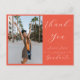Une carte de remerciement de diplômé photo moderne. Le devant peut être n'importe quelle photo de diplômé préférée avec le script tendance moderne MERCI, informations de classe et nom du diplômé. Le verso propose un modèle de texte pour un message générique et de la place pour plus.