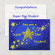 Ce design de carte postale Superstar présente des étoiles dorées sur le sol bleu avec des effets de parties scintillant et de scintillement.