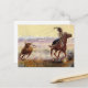 Charles (CM) Russell, le "cowboy artiste", a créé plus de 2 000 peintures de cowboys, indiens et paysages dans l'ouest des États-Unis. Il vécut et travailla parmi les cowboys et la tribu des Blood Indian dans ses plus jeunes années. Ce tableau s'appelle "On the Pond" et représente un cowboy à cheval qui longe un stylo évadé.