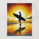 Carte Postale Surfeur sur la plage au coucher du soleil