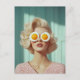Cette image fantaisiste et surréaliste capture une femme séduisante aux boucles blondes en platine d'inspiration rétro portant une robe rose pois-pois. Son look saisissant est humoristiquement interrompu par deux oeufs parfaitement cuits sur le côté ensoleillé placés au-dessus de ses yeux comme des lunettes de soleil surdimensionnées et comestibles. L'arrière - plan est décoré dans des tons turquoises et doux, avec une douce lumière qui s'écoule à travers les rideaux, créant une atmosphère onirique et pastel. La juxtaposition de haute mode et d'absurdité ajoute un côté artistique décalé qui mêle élégance vintage et surréalisme ludique. Idéal pour les amateurs de pop art, d'esthétique rétro et d'humour décalé, cette image fait une déclaration audacieuse sur la culture de consommation, les normes de beauté et le petit déjeuner. Parfait pour les tirages d'art, les cartes de voeux ou les cadeaux de nouveauté, ce concept repousse les frontières créatives avec un mélange de sophistication et d'excentricité.