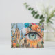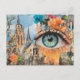 A surreal blue eye looks into the city unique collage fantasy AI generated art