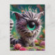 Carte Postale Surreal One Eyed Zebra Kitty Peacock Eyelashes