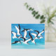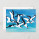 Un vol de becs rouges vifs, de becs-coupants noirs et blancs naviguant contre un ciel bleu surréaliste. :: Aquarelle originale de Barbara Bayer