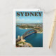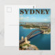 Celebrate the iconic beauty of Sydney, Australia, with this stunning aerial view postcard. The design showcases the majestic Sydney Harbour Bridge spanning the vibrant blue water, with the famous Sydney Opera House visible in the background. This postcard perfectly captures the cosmopolitan energy and beautiful harbor setting of this major Australian city, making it an excellent souvenir or art piece for travelers and collectors.