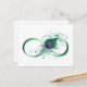 Le symbole de l'infinity with a bright, green, artistic peacock feather on a white background. Tattoo style.
