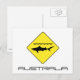 Carte postale avec panneau jaune de signalisation avec icône 'avertissement requin' avec le texte : 'Australie'