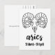 Cette carte postale Zodiac d'Aries présente une belle illustration colorée du bélier, qui est le symbole de ce signe zodiaque. Aries est le premier signe de l'année astrologique et est associé à l'élément de feu, ce qui en fait un signe passionné et animé. Cette carte postale serait parfaite pour toute personne née entre le 21 mars et le 19 avril qui aime l'astrologie et le signe zodiaque d'Aries. Il pourrait être utilisé comme une carte d'anniversaire unique et réfléchie, ou simplement comme une pièce décorative pour n'importe quel amateur d'astrologie. Aries, signe Zodiac Carte postale, 21 mars - 20 avril.