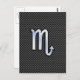 Un chrome argenté comme le symbole zodiaque Scorpio sur un décor d'impression en fibre de carbone noir au charbon de bois. Un design urbain moderne et racé pour une idée cadeau d'anniversaire sur mesure. Les motifs de broderie sont disponibles dans une sélection d'options de couleurs populaires. Utilisez le lien "Demandez à ce concepteur" pour nous contacter pour vos demandes spéciales de design ou pour obtenir de l'aide pour votre projet de personnalisation.