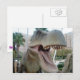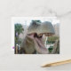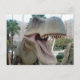 Une carte postale avec un dinosaure t-rex rugissant. Photographie de © KatiesKreations.