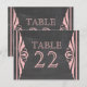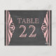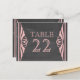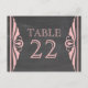 Elégante et chic Deco Chalkboard Table Numéro Carte postale avec une texture de tableau à la mode look arrière - plan et une paire de bordures pivotantes d'art déco rose clair. Cette jolie carte de table est parfaite pour un mariage à thème art déco des années 1920. Facile à customiser, il suffit d'ajouter le ou les numéros de table appropriés dans le champ de texte fourni. Cliquez sur "Customiser" pour trouver d'autres options de personnalisation.