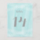 Classic et élégant Watercolor Deco Mariage Numéro de table Carte postale avec un design art déco moderne rayé croisé à hachures en blanc et une subtile aquarelle aqua arrière - plan. Cette carte simple et chic peut être facilement customisée avec vos détails mariages. Pour plus d'options de personnalisation, cliquez sur Personnaliser.
