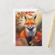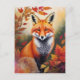 Cette oeuvre de peinture acrylique présente un renard dans une forêt en automne avec des feuilles d'automne qui l'entourent. Portrait aux couleurs chaudes, oranges, rouges, jaunes et marron, parfait pour la saison d'automne !