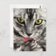 Carte Postale Tablette Chat Feline Yeux verts Gros plan