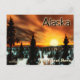 L'hiver dans la taïga arctique. Avec le soleil bas à l'horizon la neige brille et le ciel brûle orange et jaune. Le texte "Alaska" apparaît également. Ajoutez votre propre texte supplémentaire.