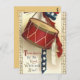 Cette carte postale vintage est une illustration vintage d'un tambour avec des rubans rouges, blancs et bleus avec des étoiles. Les deux côtés sont des notes musicales. Cette carte postale a été créée par Ellen Hattie Clapsaddle, qui fut l'un des artistes les plus prolifiques à l'apogée de la carte postale au début du XXe siècle. Profitez de votre nouvelle carte postale Vintage de tambour patriotique !