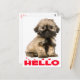 Cette carte postale canine mignonne présente un chiot chih Tzu, tan et noir, surligné d'un arrière - plan blanc et croustillant avec bonjour imprimé dans une police de coeur rouge amusante. Le verso de la carte est vide pour votre message personnel.