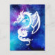 design décoratif d'un modèle de dragon de tatouage blanc contre un arrière - plan de nébuleuse surréaliste dans l'espace dans les couleurs bleu et violet sur une carte postale.