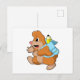 Très jolie carte du Lapin toujours pressé d'Alice . Belle qualité de l'impression en rose pastel.