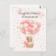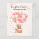 Célébrez l'arrivée d'une douce petite fille avec cette adorable carte ornée d'un ours en peluche aquarelle flottant dans un bouquet de ballon rose et crème. Des points de confettis dorés et des nuages pastel doux ajoutent une touche rêveuse et fantaisiste, parfaite pour accueillir un nouveau-né ou un cadeau à un baby shower. Customisez l'intérieur avec votre propre message sincère pour une carte vraiment personnelle.