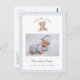 Cute Teddy Bear baby boy Thank you Birth announcement postcard with photo and birth stats with Blue and white gingham border.