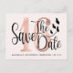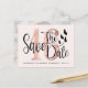 Cartes postales modernes de save the date pour un 16e anniversaire sur le thème floral. Conception avec typographie et numéro 16 en faux-foils rose gold. Personnalisez avec votre photo et vos informations au verso.