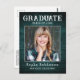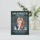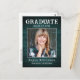 Cartes postales sur le thème rustique de la remise des diplômes de photographie de pays. Ce design est composé de typographie de style rustique en typographie surmontée de "Graduate", l'année de la graduation et bien sûr le nom du grade. Les photos mettent en valeur la carte et sont accentuées par un riche arrière - plan turquoise, couleur bleu-vert en planche de bois. Le dos de la carte offre des espaces de texte personnalisés pour des informations sur votre diplôme ou peut être effacé si vous souhaitez écrire un message à la main. Parfait pour les étudiants de niveau secondaire, collégial et universitaire et les personnes âgées.