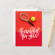 Carte Postale Tennis avec raquette et balles sur rouge pour Joue