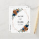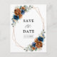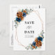 Elégant bleu marine, Terracotta, Orange terreux thème floral enregistrer la carte postale date avec élégant bouquet de bleu marine, rose couleur terre cuite pivoines et feuilles d'eucalyptus vert. Veuillez me contacter pour toute aide sur la personnalisation ou si vous avez besoin d'un autre produit avec ce design.