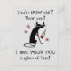 "T'es COMBIEN vieille ? Pauvre toi !" Nous parlons ici de faux pas majeurs, ce qui est TRÈS différent du Cabernet Cat ! Mais bien sûr, il transforme la situation délicate en une situation drôle avec un adorable PUN ! "Je veux dire, VERSEZ-VOUS un verre de ceci !" dit-il, offrant de verser à partir d'une bouteille de cabernet qui se trouve juste être disponible. Et voilà ! Situation enregistrée. Voici la situation désagréable illustrée sur une carte postale amusante.