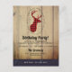 Invitation à une fête d'anniversaire dans un style rustique. Conçue avec une tête de cerf avec des bois, faite de carreaux rouges. Un cadre ovale élégant entoure l'image. Des planches de faux bois lui donnent une sensation de campagne extérieure.