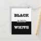 Carte postale Carte de note de bienvenue imprimée avec du texte blanc gris noir et des couleurs solides Illustration graphique et sélection de produits de la collection de TheFabricSeal sur demande shop à l'adresse Zazzle.com #ZazzleMade https://www.zazzle.com/store/thefabricseal TheFabricSeal ©️ Original. Cette illustration de design cool comprend un demi-arrière - plan haut blanc sur un arrière - plan noir avec du lettrage noir blanc et gris sur le dessus. Un design original que l'on ne trouve nulle part sur la plate-forme de vente Zazzle.com. Noir et blanc Deux Tons Monochrome conceptions souvent créer un look sophistiqué et intemporel. Ils mettent en évidence des éléments importants et créent un sentiment d'équilibre. Le noir est une couleur qui est le résultat de l'absence de lumière visible ou de l'absorption complète de la lumière visible. C'est une couleur achromatique, ce qui signifie qu'elle n'a pas de teinte, semblable au blanc et au gris. Le noir est souvent utilisé pour représenter l'obscurité, et a été utilisé pour décrire des contraires comme le bien et le mal, la nuit et le jour, et les âges sombres et l'âge des Lumières. Le blanc est souvent associé à la pureté, la perfection, l'honnêteté, la propreté et les débuts. Les objets blancs reflètent et dispersent pleinement toutes les longueurs d'onde visibles de la lumière. Le blanc est la couleur la plus légère et est achromatique (sans teinte). C'est la couleur des objets comme la neige, la craie et le lait, et c'est le contraire du noir. Cliquez sur le bouton "Customiser!" pour en faire votre propre produit personnalisé ou monogrammé. Ce sont de grands cadeaux pour les hommes, les femmes et les enfants. Et vous-même, bien sûr. Profitez de votre expérience d'achat. Commandez aujourd'hui . Merci. Merci, bonjour, ou je t'aime, les cartes de voeux imprimées sur mesure sont des cadeaux réfléchis qui sont toujours le moyen parfait pour express toi-même. Tous les produits et dessins d'art de notre magasin peuvent être customisés avec le texte de votre choix si vous avez besoin et souhaitez faire avancer les processus de personnalisation. Merci pour le choix, la recherche et le shopping à TheFabricSeal.