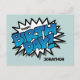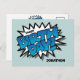 Simple, lumineux et audacieux, ce design contemporain vous mettra de bonne humeur et vous fera sourire. Les mots « Joyeux Anniversaire » sont dans un style pop art bleu vif et sont placés sur une bulle de dialogue en zig zag noir et blanc sur un fond bleu pâle. Le texte personnalisable est en noir gras et il est simple d'ajouter le nom de votre choix. Moderne et tendance, il séduira les jeunes et les moins jeunes - une excellente façon de montrer à vos amis, à votre famille ou à votre partenaire que vous les aimez le jour de leur fête !