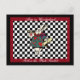 Cette carte postale texte personnalisable a un thème Alice au pays des merveilles. Elle présente le Lapin Blanc et un motif classique damier noir et blanc avec une bordure rouge foncé et noire. L'image du Lapin Blanc est l'illustration originale de l'œuvre célèbre de Lewis Carroll. Le lapin porte un haut de royal écuyer paré de cœurs et porte une trompette, un parchemin et sa montre de poche. Il y a un endroit pour personnaliser la carte avec votre propre texte en haut et en bas. Le texte par défaut dit Alice au pays des merveilles et Suivez le Lapin Blanc en écriture cursive blanche. Il suffit de cliquer sur le bouton Personnaliser pour modifier ou supprimer le texte, ou sur le bouton Personnaliser pour changer la police, la taille, la couleur du texte, la couleur de fond ou la couleur du verso si vous le souhaitez. Fait un excellent cadeau, décoration ou article de fête pour les amateurs de motifs à carreaux et damier, d'Alice au pays des merveilles, du Lapin Blanc et de créations basées sur la littérature classique. Ce design est également disponible sur des