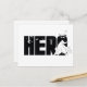 Typography graphic of the word : "Hero", featuring the outline of Batman at the end with a schaud of bats.