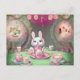 Très jolie carte du Lapin toujours pressé d'Alice . Belle qualité de l'impression en rose pastel.
