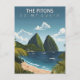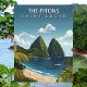 Escape to the lush paradise of the Caribbean with this stunning The Pitons Travel Card. This vintage-style illustration captures the majestic emerald peaks of Gros Piton and Petit Piton as they tower over the turquoise waters of the Caribbean Sea and white sandy beaches.