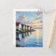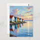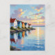Restez en contact avec vos amis de famille avec cette belle carte postale avec une illustration aérienne d'une rangée de chalets sur la côte d'une baie ou d'une entrée de l'océan au coucher du soleil.