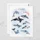 Carte Postale Thème de fête dauphin dessin aquarelle pour enfant